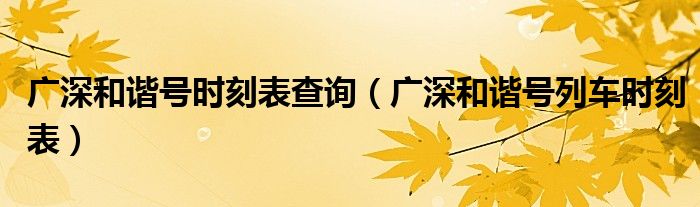广深和谐号时刻表查询(广深和谐号列车时刻表)