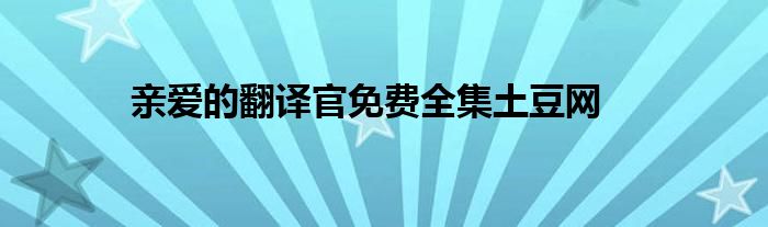 大家好,今天小六子来为大家解答以下的问题,关于亲爱的翻译官免费全集土豆网这个很多人还不知道,现在让我们一起来看看吧!