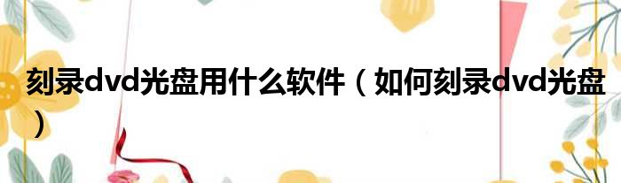 刻录dvd光盘用什么软件(如何刻录dvd光盘)