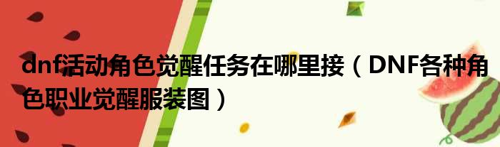 导读 大家好,今天小六子来为大家解答以下的问题,关于dnf活动角色觉醒任务在哪里接,DNF各种角色职业觉醒服装图这个很多人还不知道,现在让我们