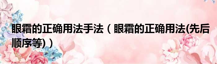 眼霜的正确用法手法(眼霜的正确用法(先后顺序等))