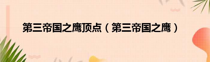 大家好,今天小六子来为大家解答以下的问题,关于第三帝国之鹰顶点,第三帝国之鹰这个很多人还不知道,现在让我们一起来看看吧!