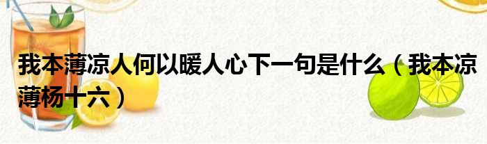 我本薄凉人何以暖人心下一句是什么(我本凉薄杨十六)