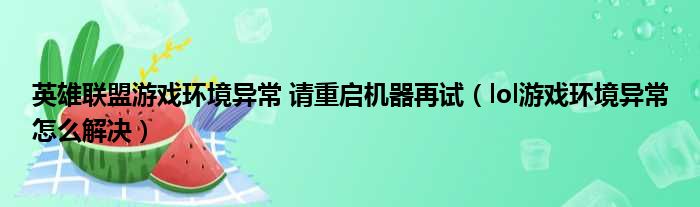 英雄联盟游戏环境异常 请重启机器再试(lol游戏环境异常怎么解决)