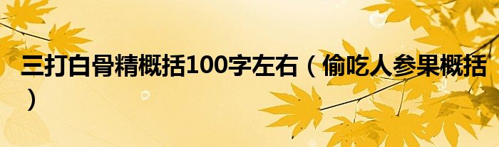 导读 大家好,今天小六子来为大家解答以下的问题,关于三打白骨精概括100字左右,偷吃人参果概括这个很多人还不知道,现在让我们一起来看看吧!1