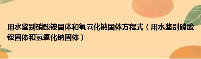 用水鉴别硝酸铵固体和氢氧化钠固体方程式(用水鉴别硝酸铵固体和氢氧化钠固体)