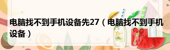 电脑找不到手机设备先27(电脑找不到手机设备)
