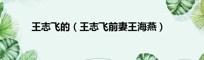 导读 大家好,今天小六子来为大家解答以下的问题,关于王志飞的,王志飞前妻王海燕这个很多人还不知道,现在让我们一起来看看吧!1、王志飞有两个