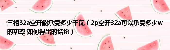 导读 大家好,今天小六子来为大家解答以下的问题,关于三相32a空开能承受多少千瓦,2p空开32a可以承受多少w的功率 如何得出的结论这个很多人还不