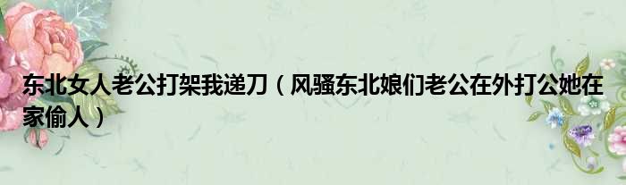导读 大家好,今天小六子来为大家解答以下的问题,关于东北女人老公打架我递刀,风骚东北娘们老公在外打公她在家偷人这个很多人还不知道,现在让