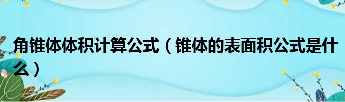 导读 大家好,今天小六子来为大家解答以下的问题,关于角锥体体积计算公式,锥体的表面积公式是什么这个很多人还不知道,现在让我们一起来看看吧