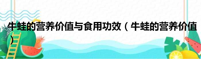 2、 牛蛙的营养价值与功效 牛蛙有滋补解毒地功效,消化功能差或胃酸过多地患者最宜吃蛙肉,体质弱或是生病地人可以用来补身,营养价值极高。