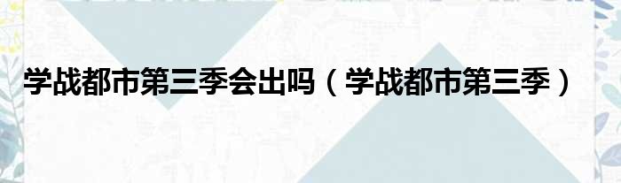 导读 大家好,今天小六子来为大家解答以下的问题,关于学战都市第三季会出吗,学战都市第三季这个很多人还不知道,现在让我们一起来看看吧!1、现