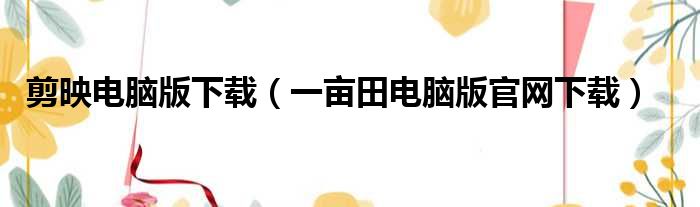 剪映电脑版下载(一亩田电脑版官网下载)