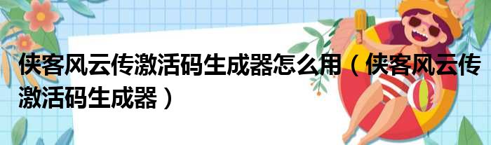 侠客风云传激活码生成器怎么用(侠客风云传激活码生成器)