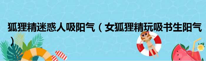 导读 大家好,今天小六子来为大家解答以下的问题,关于狐狸精迷惑人吸阳气,女狐狸精玩吸书生阳气这个很多人还不知道,现在让我们一起来看看吧!1
