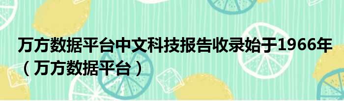 万方数据平台中文科技报告收录始于1966年(万方数据平台)