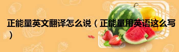 导读 大家好,今天小六子来为大家解答以下的问题,关于正能量英文翻译怎么说,正能量用英语这么写这个很多人还不知道,现在让我们一起来看看吧!1