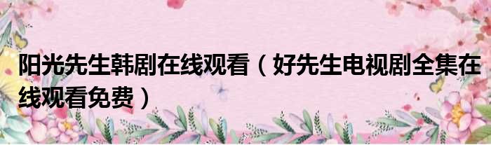 阳光先生韩剧在线观看(好先生电视剧全集在线观看免费)