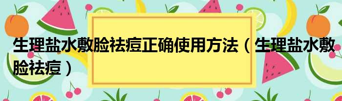 生理盐水敷脸祛痘正确使用方法(生理盐水敷脸祛痘)