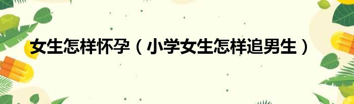 大家好,今天小六子来为大家解答以下的问题,关于女生怎样怀孕,小学女生怎样追男生这个很多人还不知道,现在让我们一起来看看吧!