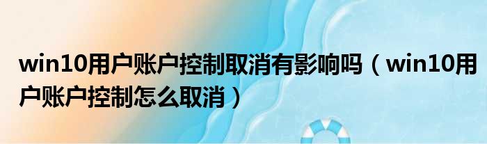 win10用户账户控制取消有影响吗(win10用户账户控制怎么取消)
