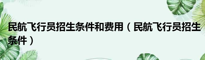民航飞行员招生条件和费用(民航飞行员招生条件)