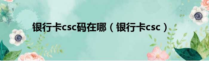 导读 大家好,今天小六子来为大家解答以下的问题,关于银行卡csc码在哪,银行卡csc这个很多人还不知道,现在让我们一起来看看吧!1、中国银行csc