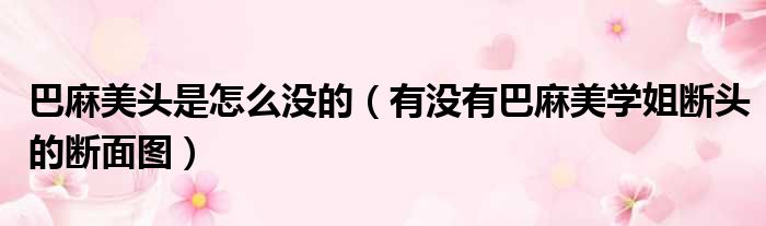 导读 大家好,今天小六子来为大家解答以下的问题,关于巴麻美头是怎么没的,有没有巴麻美学姐断头的断面图这个很多人还不知道,现在让我们一起来