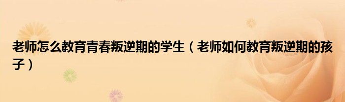 老师怎么教育青春叛逆期的学生(老师如何教育叛逆期的孩子)