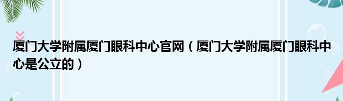 厦门大学附属厦门眼科中心官网(厦门大学附属厦门眼科中心是公立的)