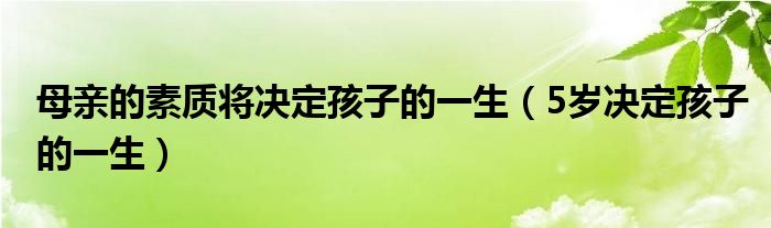 母亲的素质将决定孩子的一生(5岁决定孩子的一生)