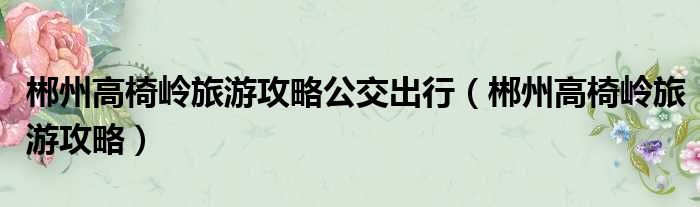 导读 大家好,今天小六子来为大家解答以下的问题,关于郴州高椅岭旅游攻略公交出行,郴州高椅岭旅游攻略这个很多人还不知道,现在让我们一起来看