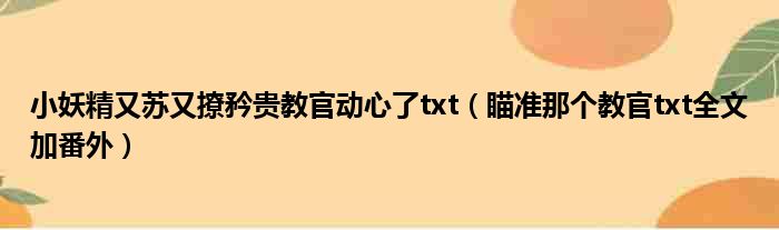 导读 大家好,今天小六子来为大家解答以下的问题,关于小妖精又苏又撩矜贵教官动心了txt,瞄准那个教官txt全文加番外这个很多人还不知道,现在让