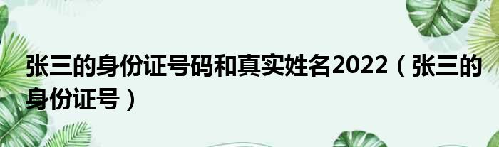 张三的身份证号码和真实姓名2022(张三的身份证号)