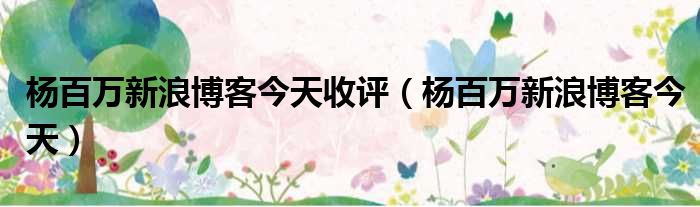 导读 大家好,今天小六子来为大家解答以下的问题,关于杨百万新浪博客今天收评,杨百万新浪博客今天这个很多人还不知道,现在让我们一起来看看吧