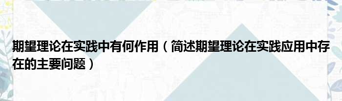 期望理论在实践中有何作用(简述期望理论在实践应用中存在的主要问题)