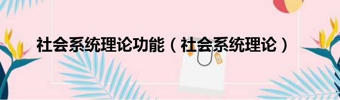 社会系统理论功能(社会系统理论)
