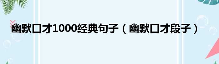 大家好,今天小六子来为大家解答以下的问题,关于幽默口才1000经典句子,幽默口才段子这个很多人还不知道,现在让我们一起来看看吧!