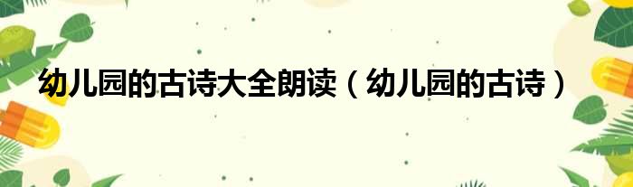 幼儿园的古诗大全朗读(幼儿园的古诗)