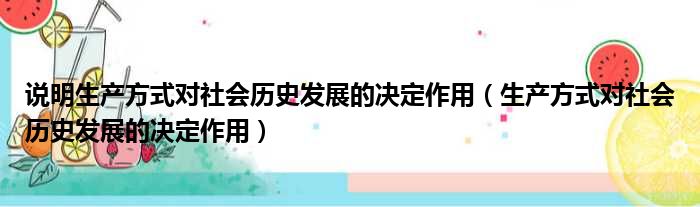 说明生产方式对社会历史发展的决定作用(生产方式对社会历史发展的决定作用)