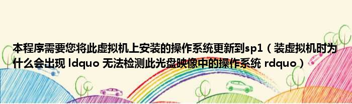 本程序需要您将此虚拟机上安装的操作系统更新到sp1(装虚拟机时为什么会出现 ldquo 无法检测此光盘映像中的操作系统 rdquo)