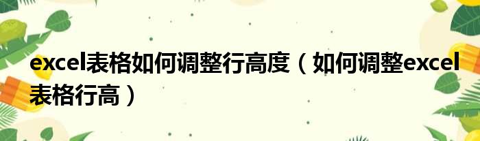 excel表格如何调整行高度(如何调整excel表格行高)