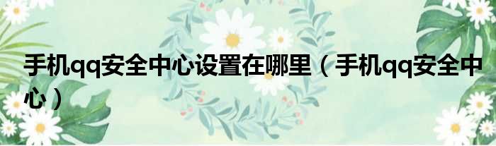 手机qq安全中心设置在哪里(手机qq安全中心)