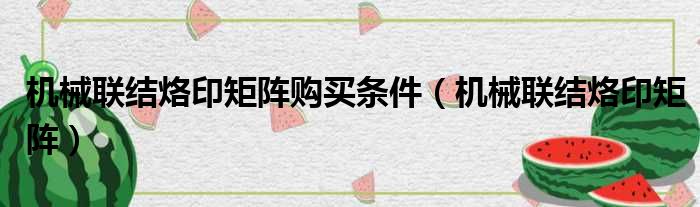 机械联结烙印矩阵购买条件(机械联结烙印矩阵)