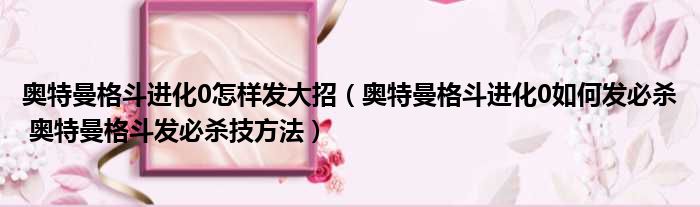 2、 奥特曼格斗进化0发必杀技方法: 能量满之后按← + ○...(发之前要把对手打远,否则会被破解,还有对手能量满的的话,也可挡住),就是人物气血下的能量槽,满了会闪(就是MAX),这个时候按后加圈。