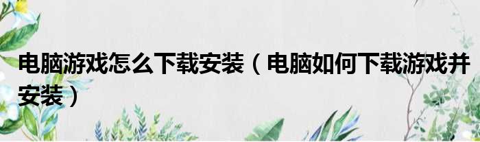 电脑游戏怎么下载安装(电脑如何下载游戏并安装)