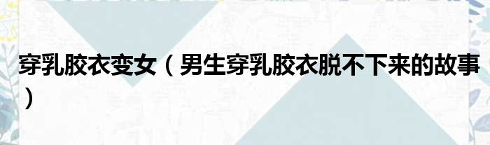 大家好,今天小六子来为大家解答以下的问题,关于穿乳胶衣变女,男生穿乳胶衣脱不下来的故事这个很多人还不知道,现在让我们一起来看看吧!
