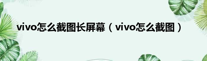 导读 大家好,今天小六子来为大家解答以下的问题,关于vivo怎么截图长屏幕,vivo怎么截图这个很多人还不知道,现在让我们一起来看看吧!1、一、同