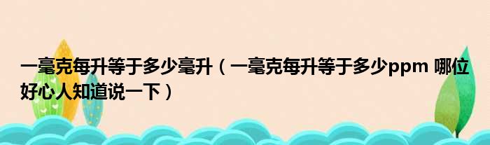 一毫克每升等于多少毫升(一毫克每升等于多少ppm 哪位好心人知道说一下)